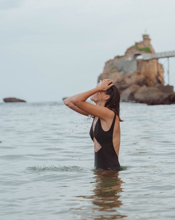 • Le dos, dévoilé juste ce qu'il faut, ajoute une touche d'élégance maîtrisée.